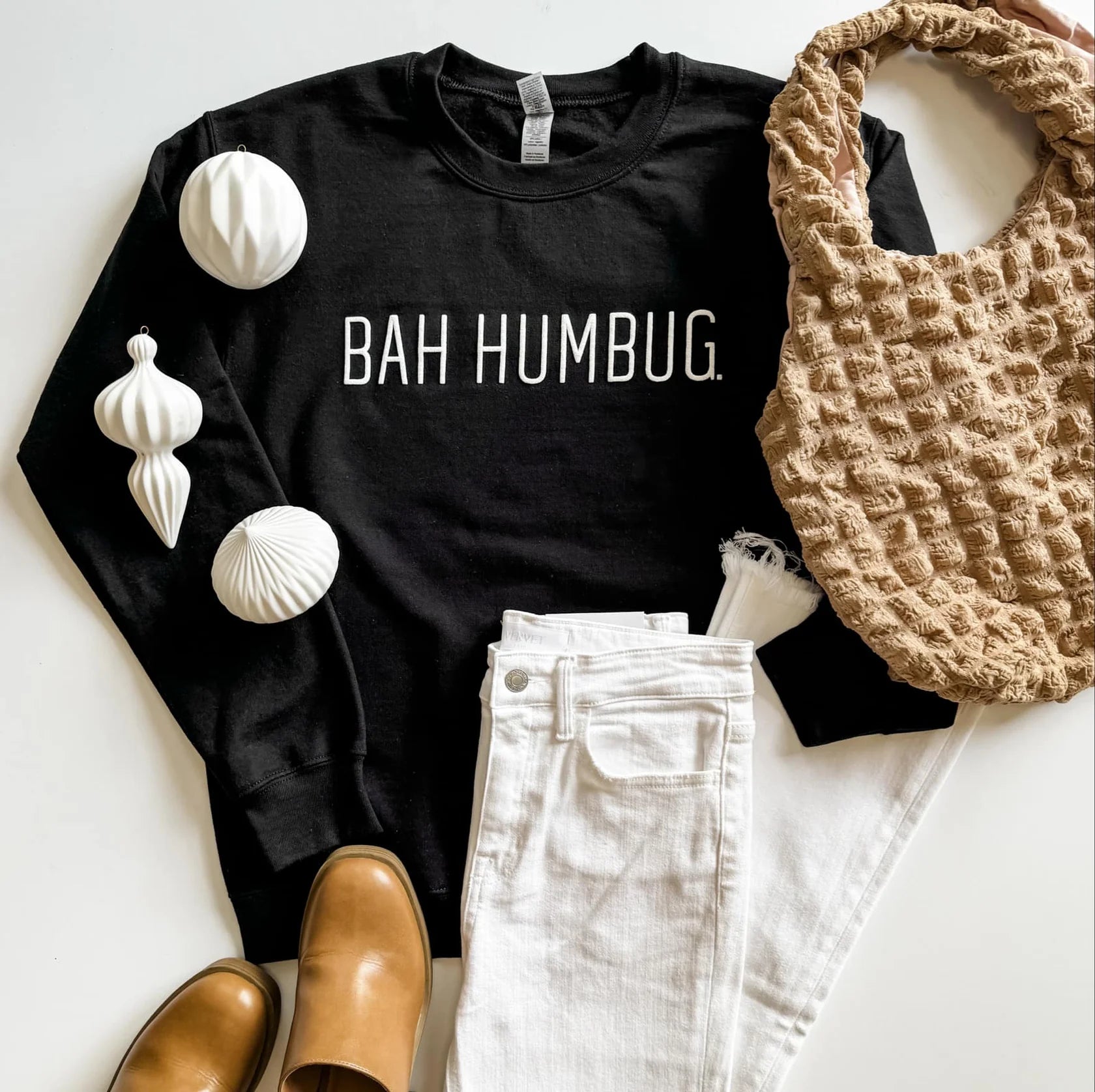Deck the halls? More like, "Where’s the remote?" If holiday cheer has you rolling your eyes and avoiding mistletoe at all costs, we have the perfect attire for your grinchy spirit. Introducing the Black "Bah Humbug" Sweatshirt – because not everyone has to be jolly, right?