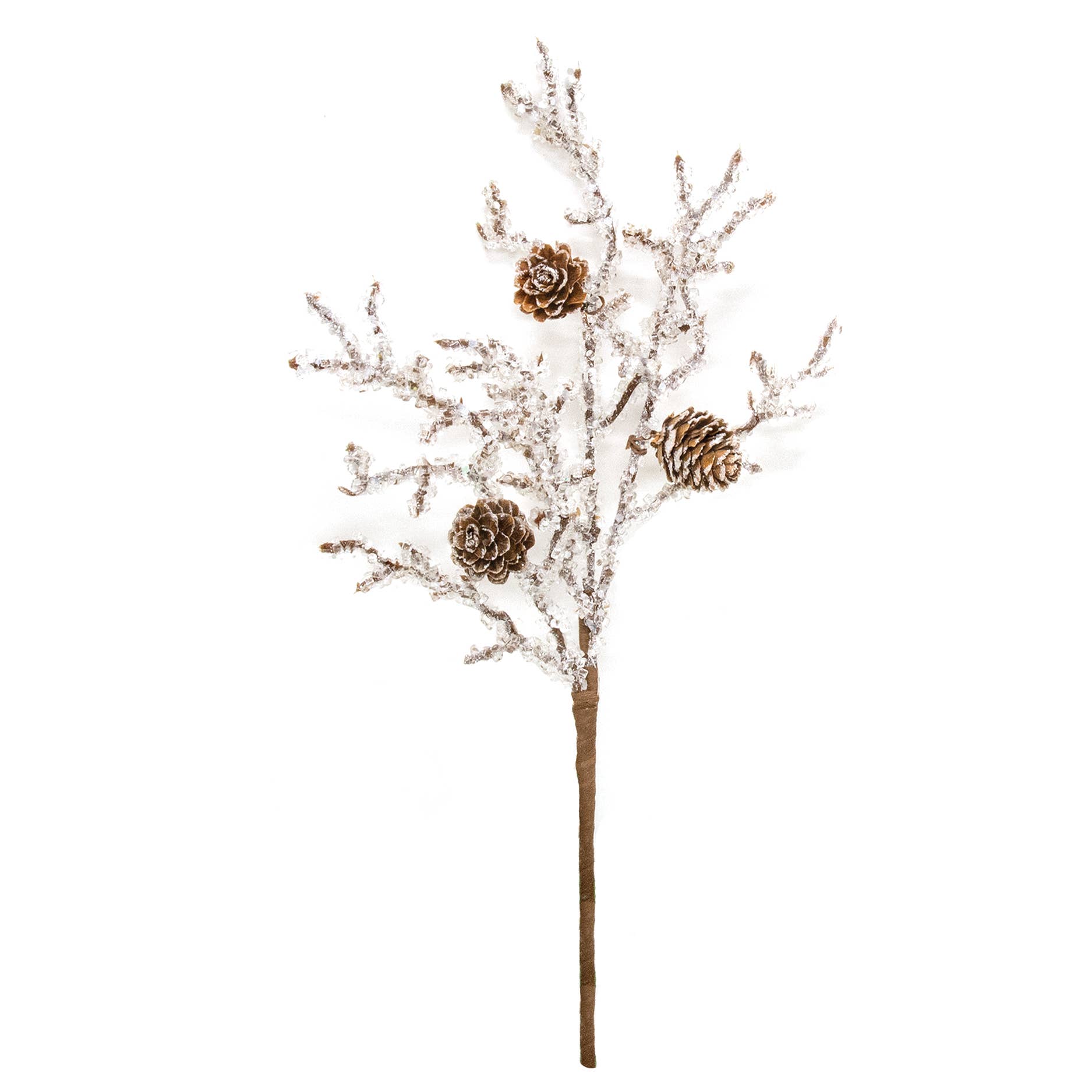 Capture the magic of a winter wonderland with this stunning Frozen Twigs & Pine Pick. This 14-inch floral accent features delicate branches and petite pinecones wrapped in a shimmering crystallized frost coating that catches the light beautifully. The flexible brown stem makes it effortless to incorporate into holiday arrangements, wreaths, or standalone displays. Perfect for creating that enchanting iced-over aesthetic, this pick brings authentic seasonal charm to your winter and Christmas décor while working beautifully alongside complementary greenery and florals.
