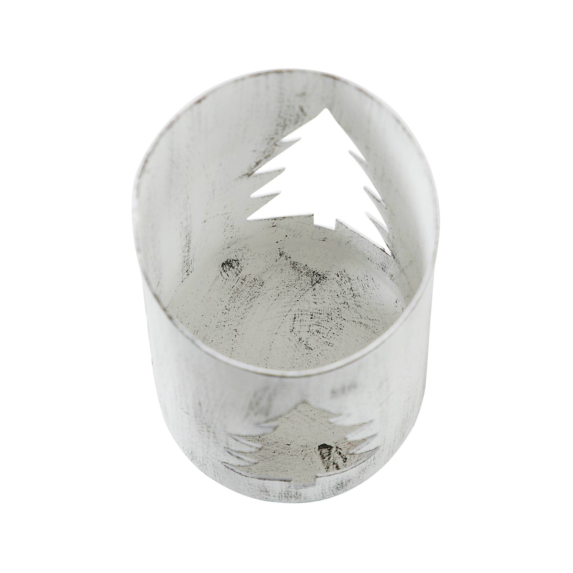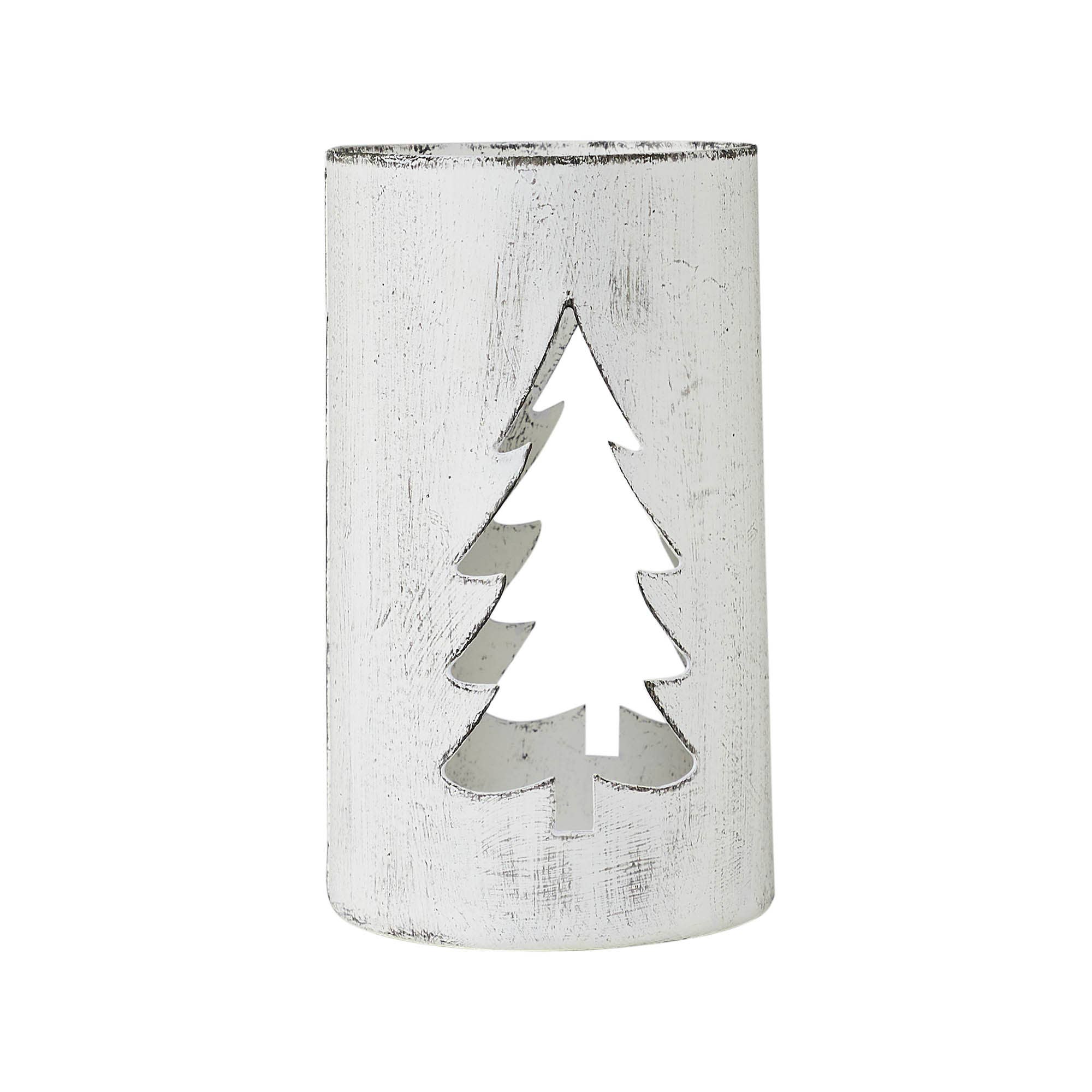 Illuminate your home with the festive charm of the Metal Votive Candle Holder in the shape of Christmas trees. Crafted from sturdy metal, this candle holder features cutout Christmas tree designs, adding a touch of holiday cheer to your winter and Christmas decor. Measuring 4.25x2.75x2.75 inches, it serves as a delightful accent piece for kitchen dining tables, shelves, or mantels, infusing your space with warmth and seasonal spirit. The light creme finish and rustic primitive style of this candle holder evoke the cozy ambiance of winter and Christmas festivities. Adorned with charming Christmas trees, it brings a whimsical element to your indoor decorations, enhancing the joyful atmosphere of your home.