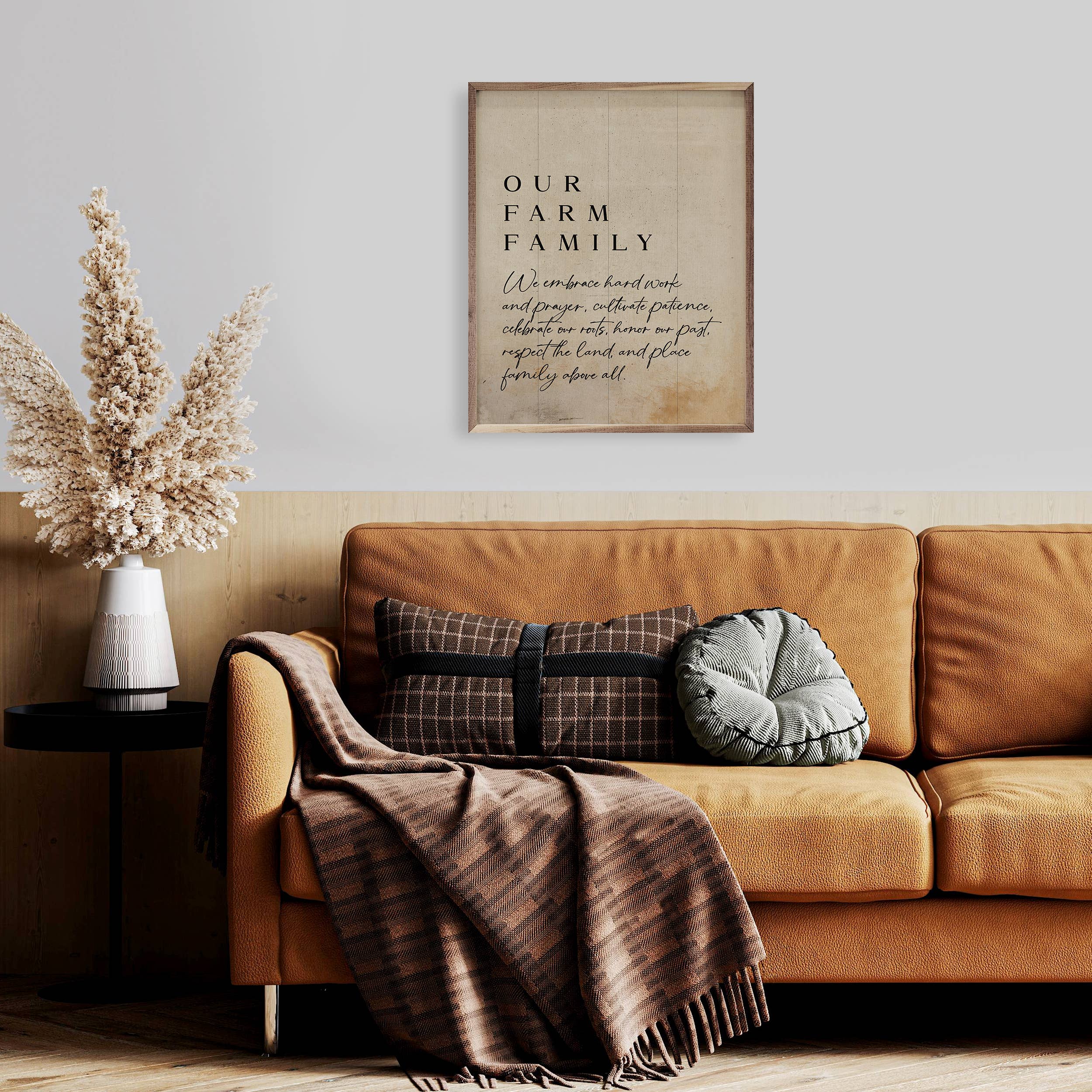 Featuring a solid wood insert with intricate, rustic farm-inspired designs, this piece is framed in rich walnut to showcase the natural wood grain. Its charming craftsmanship and down-to-earth appeal make it a perfect addition to any farmhouse décor, offering timeless style and quality.