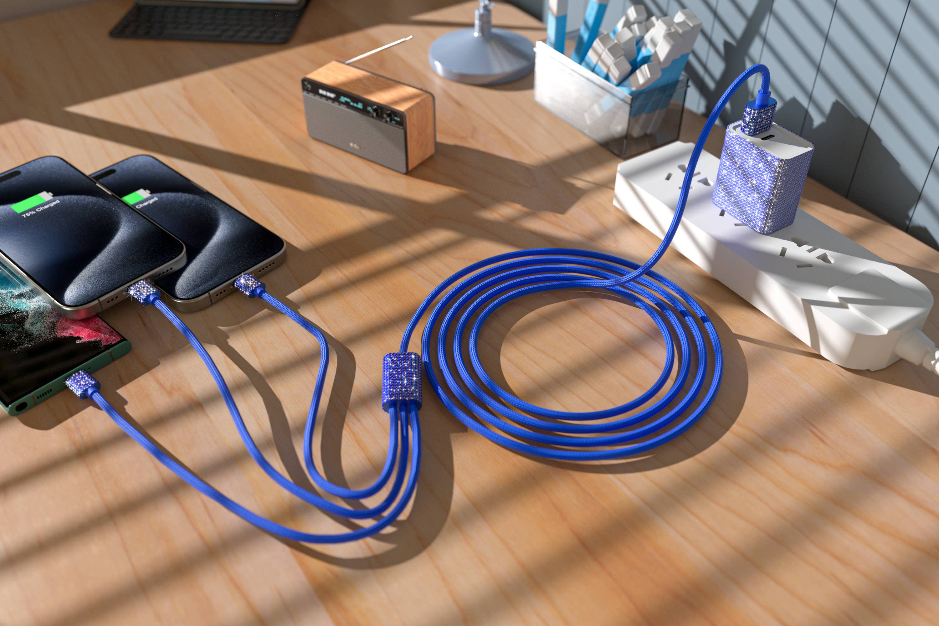 Experience the ultimate convenience with our 3-in-1 Charging Cables, specially designed for iPhone/iPad and Android devices! This handy set includes two USB-C cords and one Lightning cord, all at a generous 6-foot length—perfect for charging from anywhere in your space. Say goodbye to clutter with these versatile cables, which are compatible with iPhone models, iPads, and various Android smartphones and tablets, ensuring you stay powered up no matter where you are. Built to last, these durable cables deliver fast and reliable charging for all your gadgets. Bullet Points: Versatile Compatibility: Works with iPhone, iPad, Android smartphones, and tablets. Convenient Length: 6-foot cables for easy charging from a distance. Durable Construction: Designed for everyday use with lasting quality. Fast Charging: Efficient power delivery for all your devices.