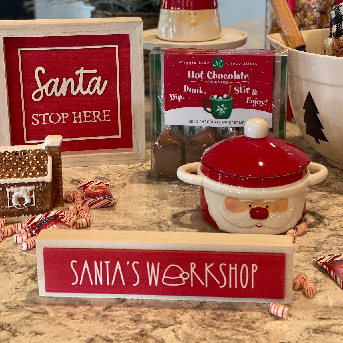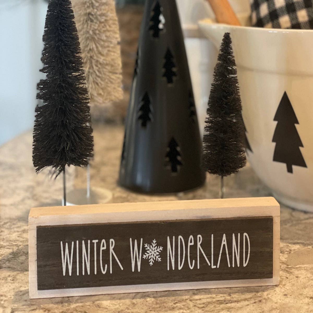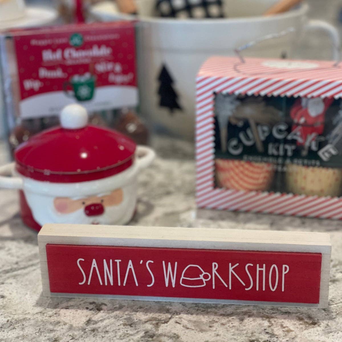 Measuring 8" wide by 2" tall and 1" deep, this reversible wooden Christmas sitter offers two festive scenes. One side showcases "Winter Wonderland" with a whitewashed wood base, layered with 3D black wood accents and crisp white ink. Flip it over to reveal "Santa's Workshop," featuring a whitewashed base with 3D red wood details and pure white ink. Its dimensional design and classic holiday colors make it a charming addition to your seasonal décor.