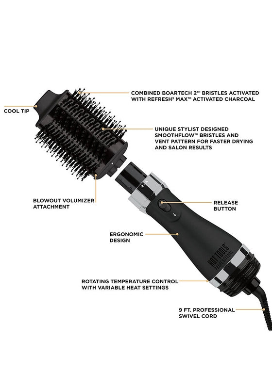 A new way to dry and style your hair to perfection, made even more convenient! The Hot Tools Professional Black Gold One-Step Detachable Blowout. Take it with you anywhere, so you can create an at-home professional salon blowout.