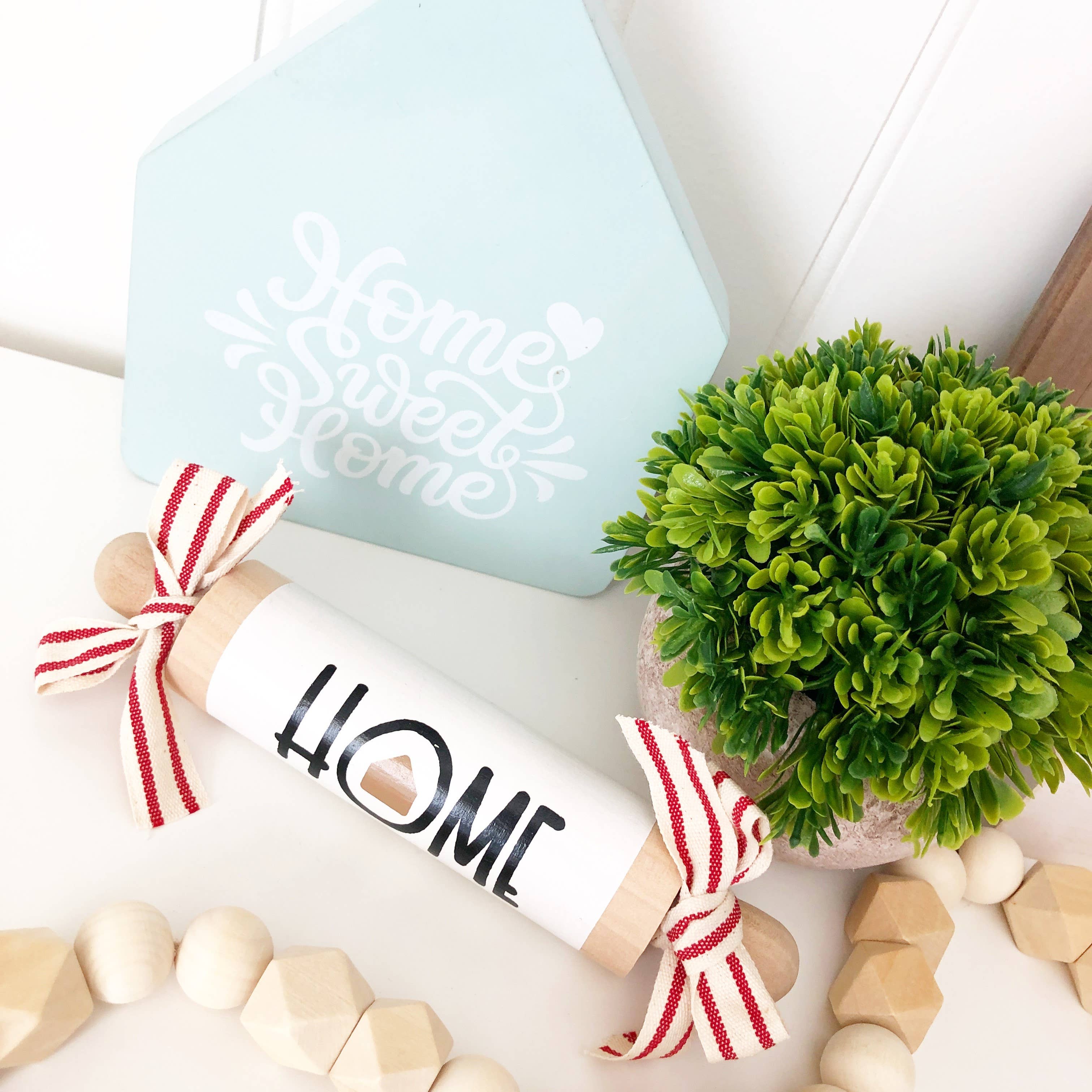 These charming mini decorative rolling pins are ideal for enhancing the look of a decorative cutting board, a cozy mug setting, or a stylish tiered tray. Each rolling pin features hand-painted designs and words, complete with a ribbon for easy display. Choose from 8 delightful themes: Cupcake Sprinkles, EAT, Family, Farm Fresh, Give Thanks, HOME, Kitchen Plaid, and LOVE. Measuring 7" long and about 1.25" wide, these pieces are designed strictly for decoration and not for cooking use. Add a touch of warmth and personality to your space today.