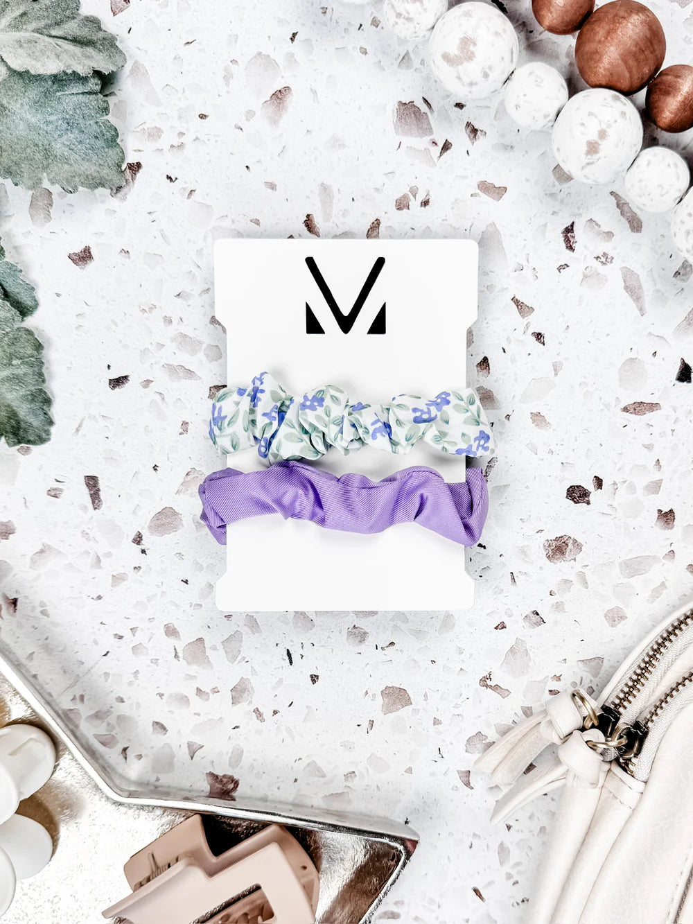 Elevate your hairstyle with our Hair Scrunchies set. Featuring one floral design and one solid color, these scrunchies bring a sophisticated charm to any outfit. Ideal for securing your hair comfortably while boosting your style, these chic scrunchies are a must-have accessory for a trendy look.
