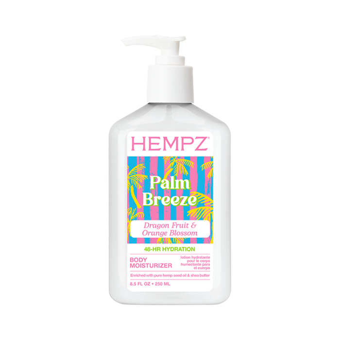 Soak up the sunshine with Hempz Limited Edition Palm Breeze Moisturizer, a summer-ready essential inspired by the carefree energy of a Palm Springs pool party. This fun, fruity formula combines 100% Pure Natural Hemp Seed Oil with skin-conditioning botanicals to keep your skin soft, smooth, and beautifully hydrated. The long-lasting tropical, fruity floral, and citrus scent captures the essence of warm days, cool breezes, and endless summer fun!