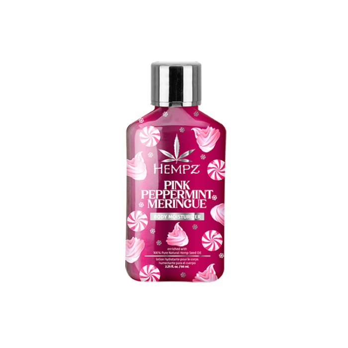 Indulge in the festive scent of our Pink Peppermint Meringue Lotion. Infused with 100% hemp seed oil, it hydrates and softens, wrapping you in a sweet, holiday-inspired aroma.