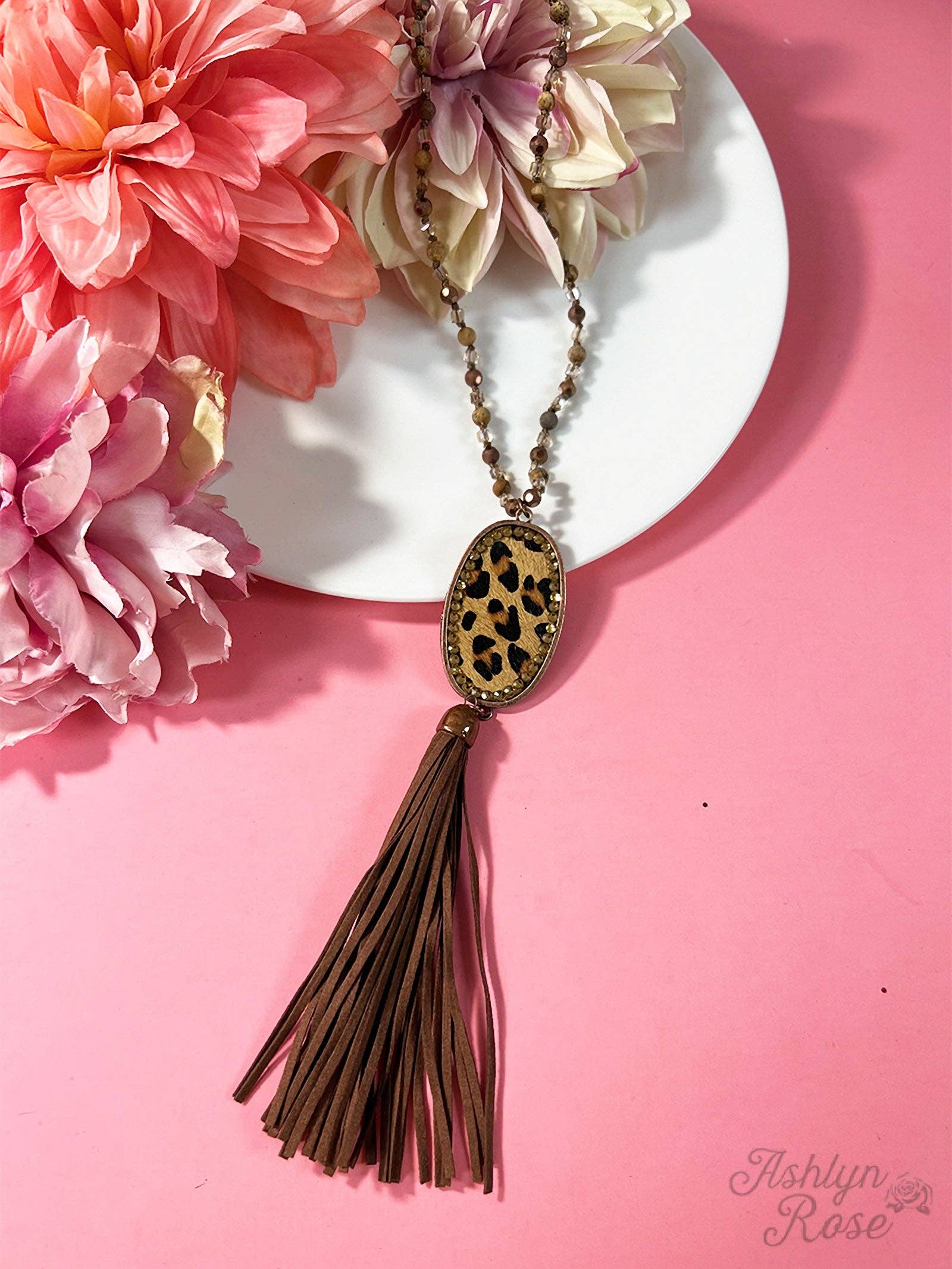 Leopard & Honey Crystal Oval Pendant Beaded Necklace