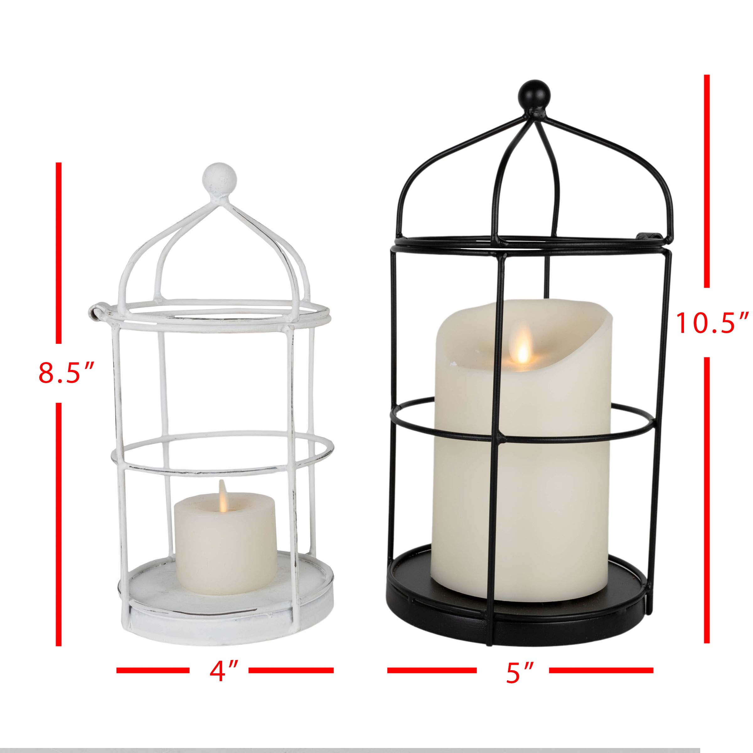 Add the perfect touch of modern design to your home’s aesthetic. Crafted from black and white metal with a hinged top for easy candle access, these become the perfect accessory to your luminary candle display. Place a pillar candle in either holder and display on your mantel or near your fireplace for a welcoming glow. -Style the small and large sizes of the set together for a glowing vignette. -Opens at the top for easy candle access. Top is hinged. -Holds 3" wide candle, not included. -Dimensions: 5 x 5 x 10.25"H, 4 x 4 x 8.5"H; Height with top open: 7.25", 5.75" -Material: Metal -Add a touch of modern design to your home decor. -Perfect for: Clearance, Sale, Farmhouse Home Decor, Home Decor Modern