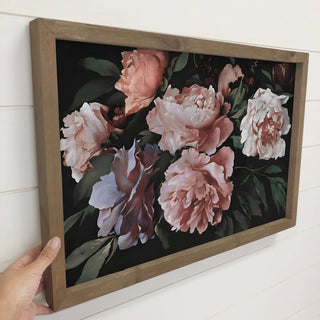Peonies Dark Still Painting - Framed Canvas Wall Art Print