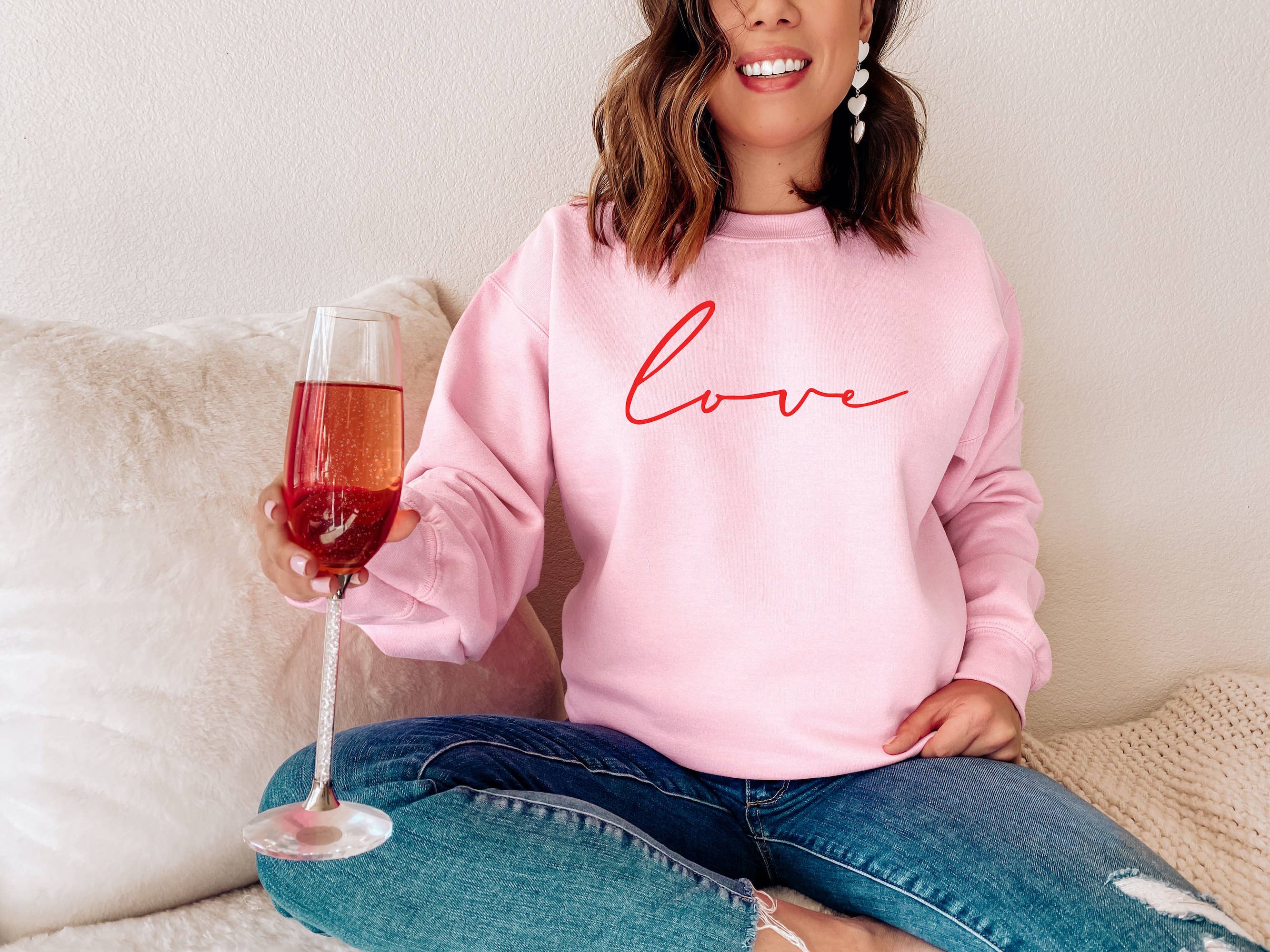 White letter printed on RED sweatshirt | Our unisex crew neck sweatshirts are SUPER soft. Perfect to pair with yoga pants or dress it up with a flannel or vest..either way you will be comfy & cute!