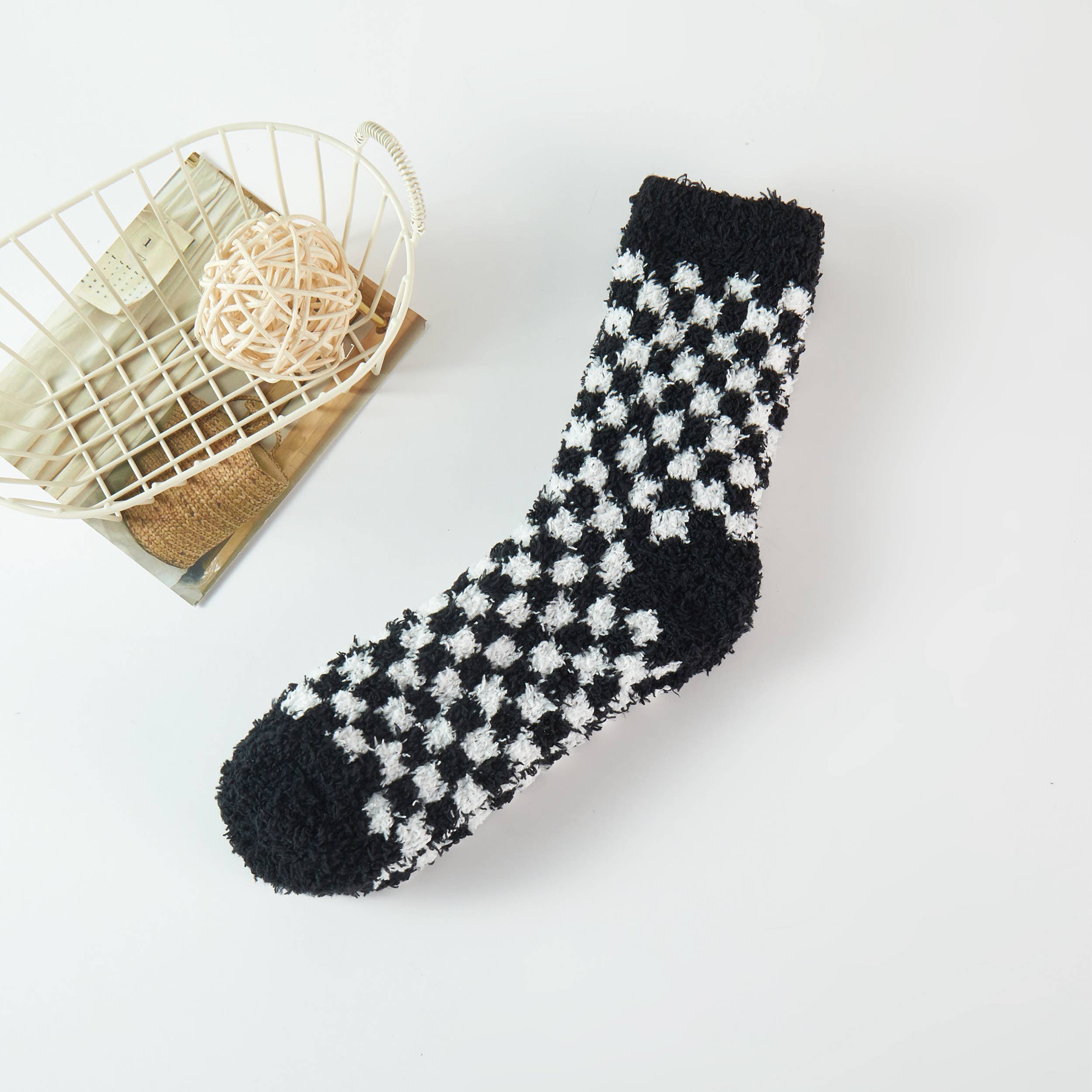 Plaid Checker Pattern Two Tone Fuzzy Socks