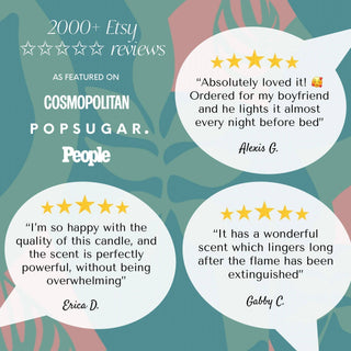—CANDLE INFO— * 100% Natural Soy Wax * Premium Fragrance & Essential Oils * Lead-free Cotton Wick * Handmade in the US * Eco-friendly, Non-toxic, Cruelty-free, Phthalate-free, Petroleum-free, Chemical-free, and Preservative-free. * Standard 9 oz Amber Jar : Diameter 2.75 in | Height 3.5 in | Burn time: Up to 60 hours + —CANDLE CARE— * To get the most from your candle, trim the wick to 1/4” before each burn and allow at least an hour's burn time for fragrance release. * Burn Candle for No More Than 4 Hours at a Time. * Keep Candle Away from Open Windows, Hot Surfaces, Fans, Children & Pets. * Never Leave a Burning Candle Unattended.