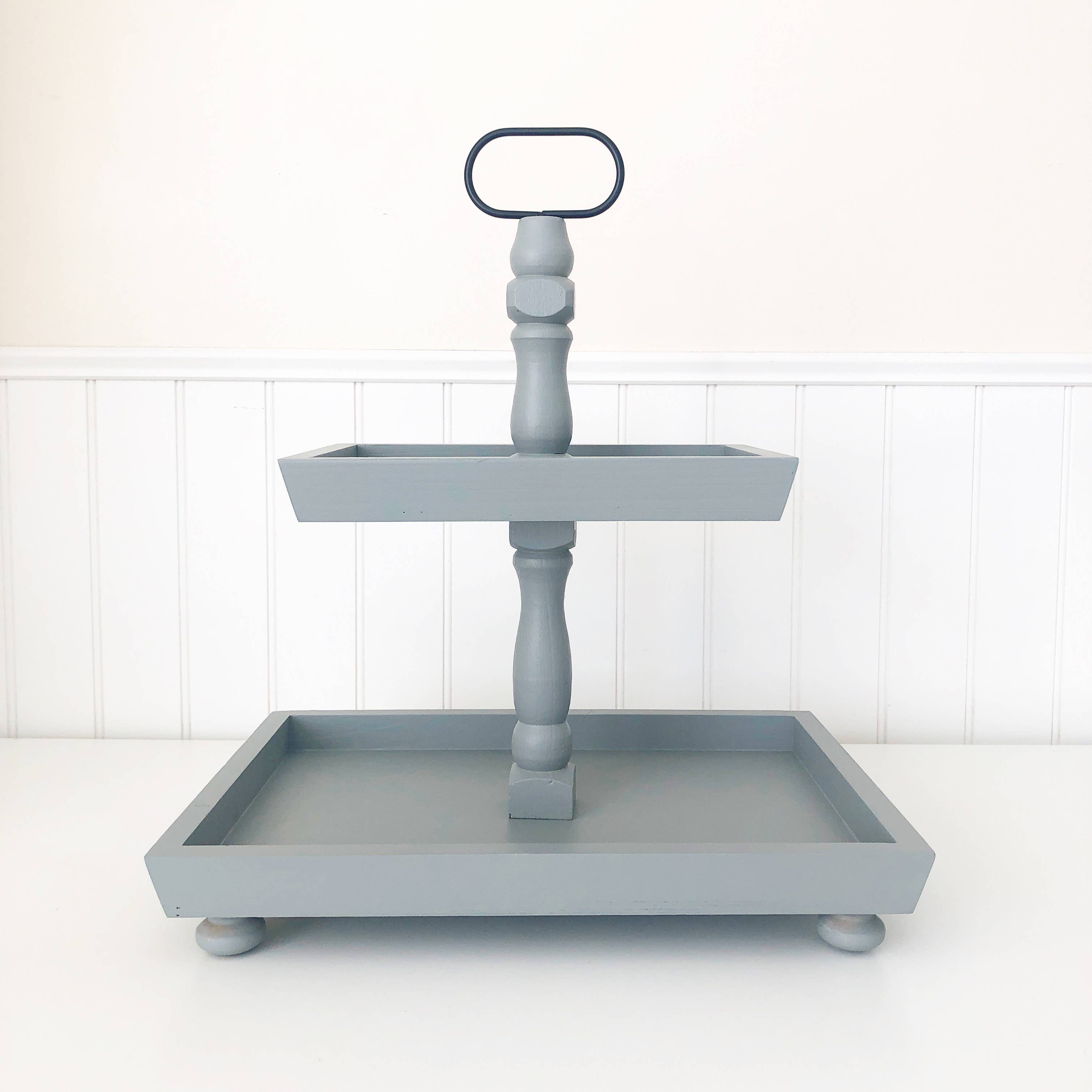 This charming distressed wood tiered tray offers a base about 33% larger than typical trays, giving you extra space to showcase more decorations with a more balanced look. The bottom tray measures 15.75 x 11.5 inches, with the top tray at 11.125 x 7.25 inches, reaching a total height of 18 inches. Assembly is quick and effortless—no tools needed, ready in under a minute!